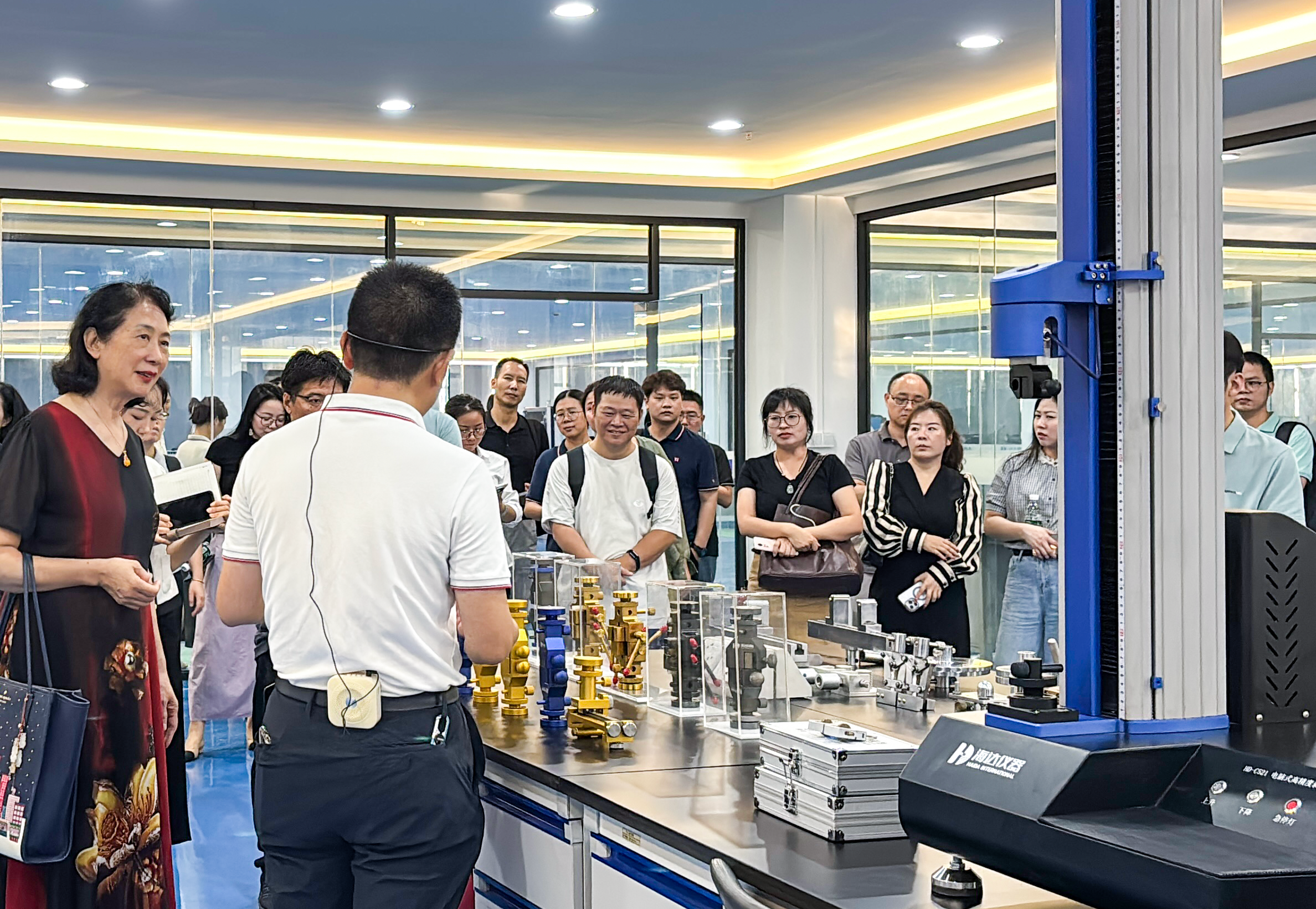 9月26日,在深圳市质量检验协会和广东乐思体育有限公司共同组织下,原深圳市市场监督管理局一·级调研员周文、深圳市质量检验协会会长钟勇、深圳市质量检验协会执行秘书长任清泉、副秘书长吴汉武及会员代表40余人到访广东乐思体育有限公司,我司董事钟凤姣、业务负责人张建热烈欢迎各位嘉宾的到来,并陪同嘉宾通过实地参观、技术分享、成果发布、互动交流,共同为环境可靠性检测行业的创·新发展注入新思考、搭建新桥梁。