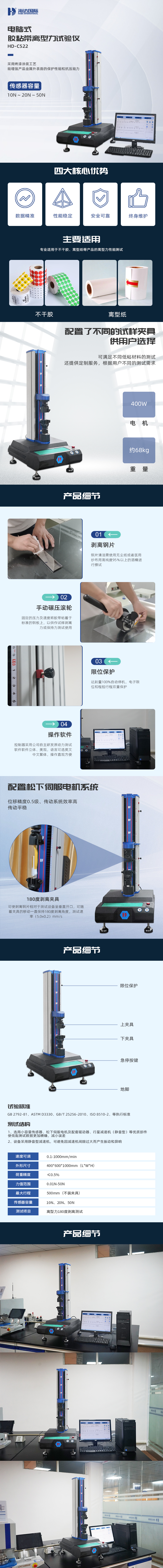 一、HD-C522 电脑式胶粘带离型力试验仪产品功能 HD-C522 电脑式胶粘带离型力试验仪,专业适用于不干胶、离型纸等产品的离型力性能测试。 二、HD-C522 电脑式胶粘带离型力试验仪测试应用 拥有丰富的应用,配置了不同的试样夹具供用户选择,可满足不同低粘材料的测试要求;针对用户材料的不同,还提供定制服务,满足不同用户的测试需求。 三、HD-C522 电脑式胶粘带离型力试验仪测试事项 1.测试环境:(23±1)℃温度、相对湿度(50±5)%; 2.测试设备和样品需在恒温环境中静放2个小时以上;
