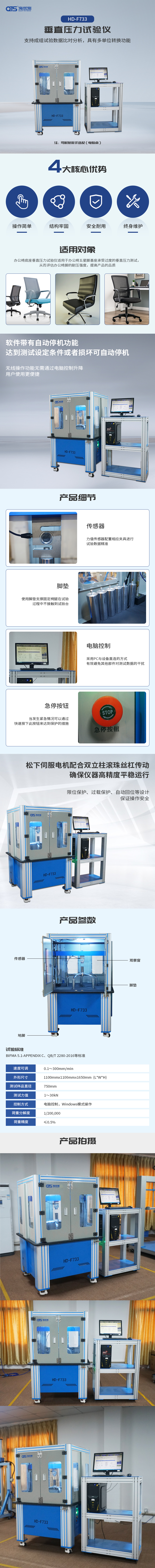 HD-F733办公椅底座垂直压力试验仪适用于办公椅五星脚基座承受过度的垂直压力测试,从而评估办公椅脚的耐压强度,提高产品的品质。