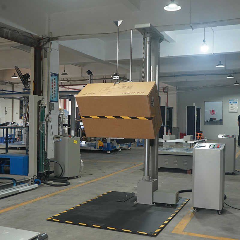 跌落高度(H): 它直接决定了冲击能量的大小。高度的设定来源于对物流运输环境的长期研究和统计数据,包括仓库分拣线的高度、人工搬运时手滑的常见高度、车辆车厢底板的高度等。不同重量、不同运输环境的样品,其跌落高度标准也不同。
