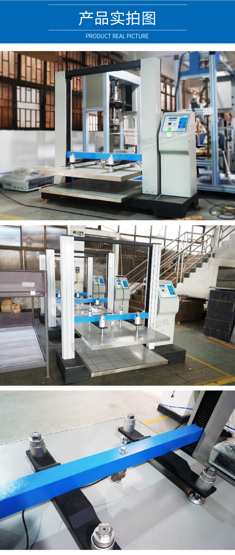 纸箱耐压试验机工作原理; 其采用直流电机拖动传动系统,通过链条形成压板的施压运作,高精度力值传感器准确反映试件的负荷状况,微电脑系统采集处理试验参数,输出显示试验结果。