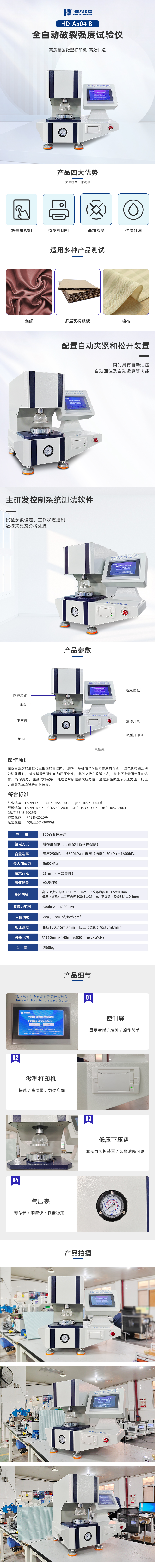 1) 感应方式:压力转换器; 2) 指示方式:数字显式,可扩展连电脑操作 ; 4) 操作方式:本机为全自动试验机,自动油压,自动回位及自动运算,储存测试资料及打印; 5) 自动夹紧和松开装置,试样夹持力:50~1200kpa可调; 6) 力量单位:kpa、Lbs/in^2、kgf/cm^2,带单位切换功能; 7) 容量选择:0~56kgf/cm^2(0.1kgf/cm^2) 8) 亚克力防护装置,测试指示灯,可视破裂过程 9)分辨力:0.2 kgf/cm2 ; 10) 夹环材质:不锈钢SUS#304 ; 11) 夹环内径: 上夹环内径Φ30.5±0.1mm,下夹环内径 Φ30.5±0.1mm ; 12) 液压油:硅油100%; 14) 加压速度:170±15ml/min; 15) 马 力:90W调速马达; 15) 外型尺寸: (L×W×H)445×425×525mm ; 16) 重 量:50kg ; 17) 电 源:1∮,AC220V 。
