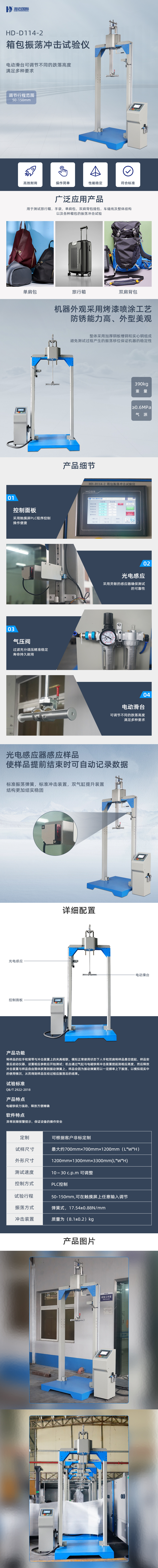 1. 金属支架高度: 2500mm; 2. 试验行程:0-150mm可调; 3. *大承受重量:50kg 4. 振动方式:冲击装置可上下运动,吸盘降噪装置,吸盘有一气压式降噪装置,可减对试件不必要的震荡; 5. 减震弹簧常数为:(单支)17.54N/m(±5%); 6. 测试速度:10~30r/min可调整; 7. 记录装置:有自动记录功能 8. 控制方式:可调节试验速度,设定冲击试验次数,有试样中途跌落自动停机功能; 9. 动力系统:气动控制 10. 机台尺寸:(L×W×H) 1400×1200×3250mm; 11. 重量:250Kg; 12. 电源:1∮,220V/50Hz。