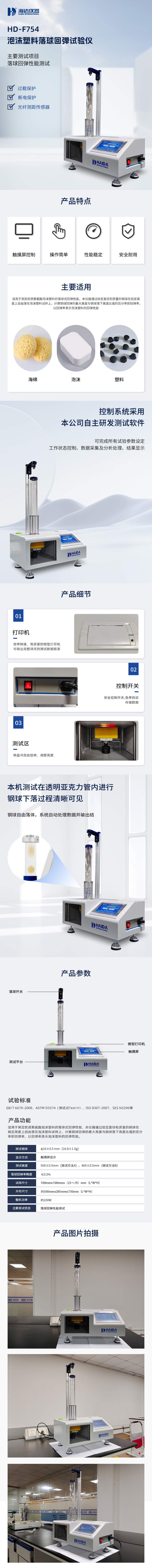适用于测定软质聚氨酯泡沫塑料的落球式回弹性能.本仪器通过给定直径和质量的钢球在规定高度上自由落在泡沫塑料试样上,计算钢球回弹的高度与钢球落下高度比值的百分率既回弹率,以回弹率表示泡沫塑料的回弹性能。该机具有使用可靠,测量精度高等特点。