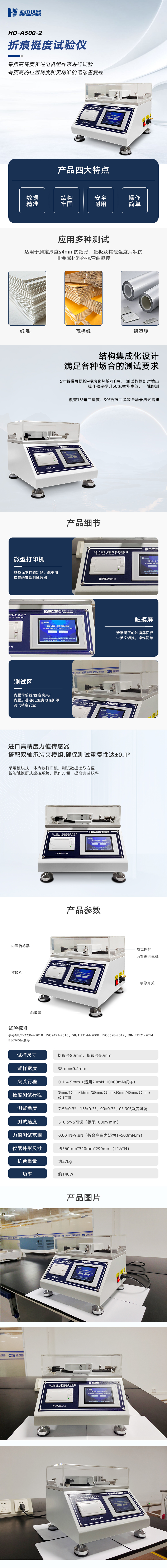 挺度是很多纸种需要检测的一项重要的物理性能指标。本试验仪是一款按照GB/T22364-2018国家标准设计的,智能的电子折痕挺度试验仪。适用于测定厚度≤4mm的纸张、纸板及其他强度片状的非金属材料的抗弯曲挺度。操作简单,测试结束后可通过试验仪配备的打印机打印测试数据。