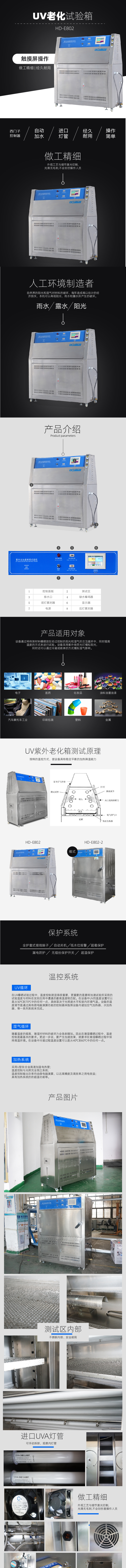本机可以模拟由阳光、雨水和露水对材料造成的危害,利用莹光紫外(UV)灯模拟阳光照射的效果,利用冷拟湿气雨水和露水。被测试材料放置于一定温度下的光照和潮气交替的循环程序中进行测试。经过数天或数周的测试,即可重现户外数月至数年出现的危害。危害类型包括:褪色、变色、失光、粉化、裂痕、浑浊、泡化、脆化、强度衰退和氧化。