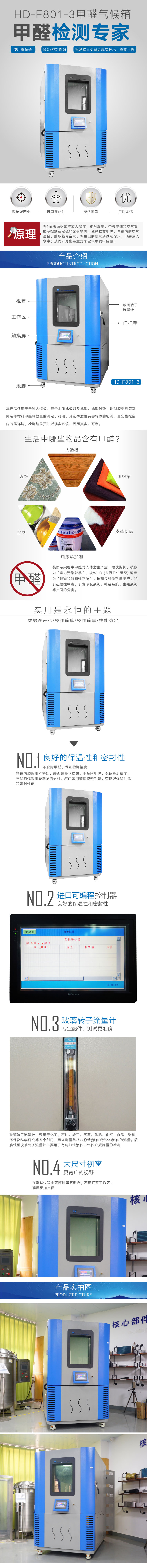 产品简介:甲醛检测气候箱是根据国标GB18580-2017和ASTMD6007-2、EN717-1、ANSI/BIFMAX7.1-2007开发的一套专门针对板材甲醛释放量检测的1m3气候箱,其特点是可*大限度的模拟室内气候环境,检测结果更贴近现实环境,因而真实、可靠。