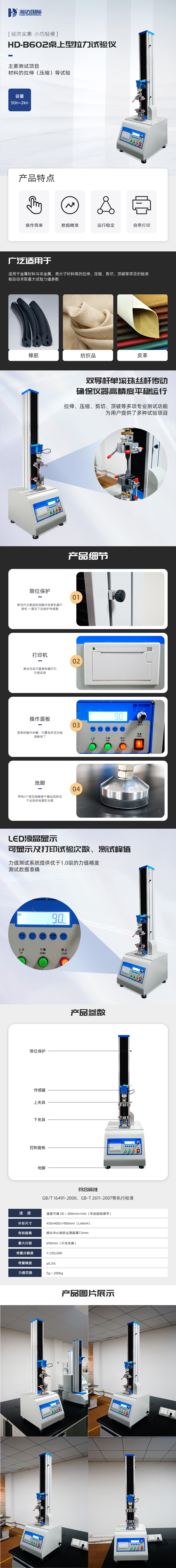 HD-B602电脑伺服式拉力材料试验仪,专业适用于塑料薄膜、复合材料、软质包装材料、塑料软管、胶粘剂、胶粘带、不干胶、医用贴剂、医疗器械、离型纸、保护膜、组合盖、金属箔、隔膜、背板材料、无纺布、橡胶、纸张等产品的拉伸、剥离、变形、撕裂、粘合、穿刺力、开启力、低速解卷力、拔开力等性能测试。