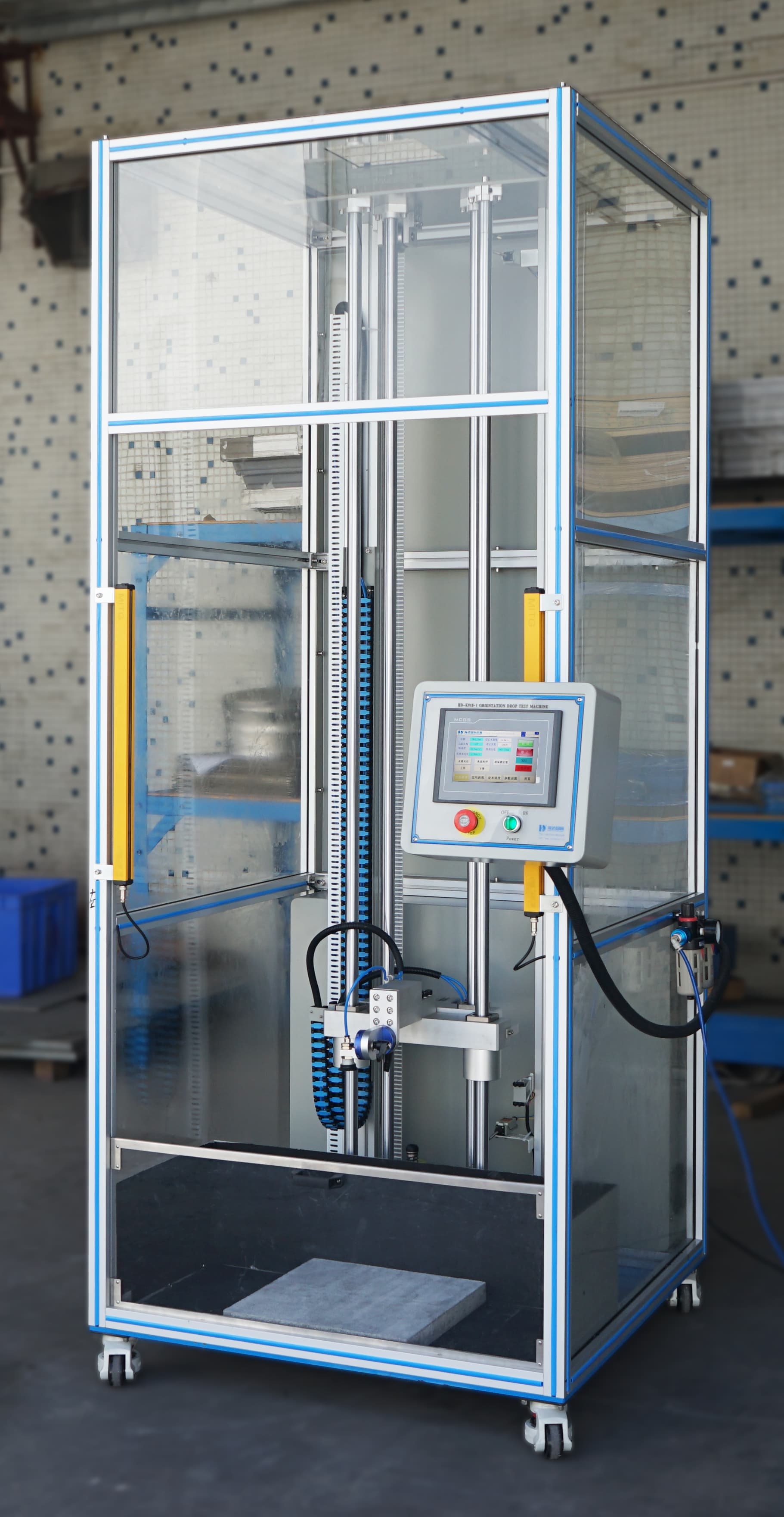 该设备用于评估产品在客户实际使用时意外跌落后对产品性能的影响,适用于 LCM、手机、PAD、电子书、电子辞典等小型电子产品作指定方向或指定位置的跌落测试。