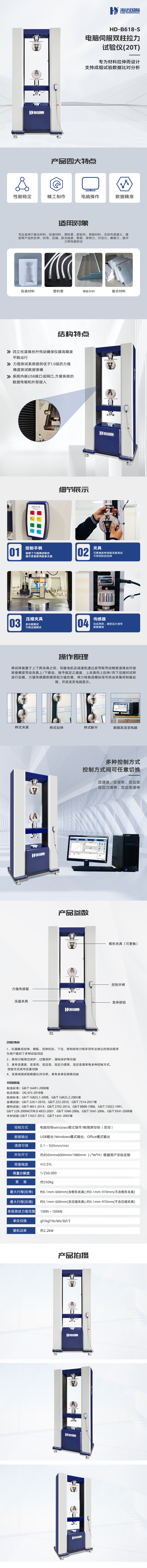 电脑伺服双柱拉力试验仪专业适用于复合材料、包装材料、塑料管、胶粘剂、背板材料、无纺布、混凝土、橡胶等高强度非金属材料和医疗器械、线缆、钢材等金属产品的拉伸、抗弯、压缩、胶合强度、撕裂、穿刺力、开启力、解卷力、拔开力等性能测试。